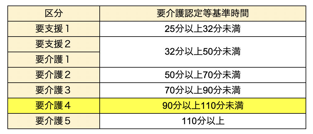 覚えなくてもいいのですが、介護度は『要介護認定基準時間』で分別されることだけは知っておきましょう。