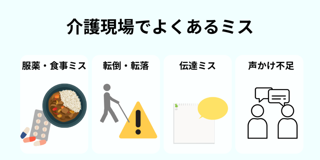 介護現場のミスは、ほんの小さなことから重大なトラブルまでさまざまです。