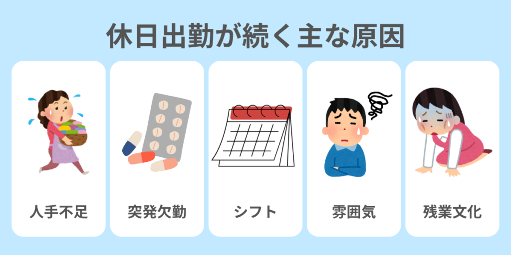 1人が欠けるとすぐにシフトに穴があき、その穴埋めを休日出勤で補う構造になりがちです。
